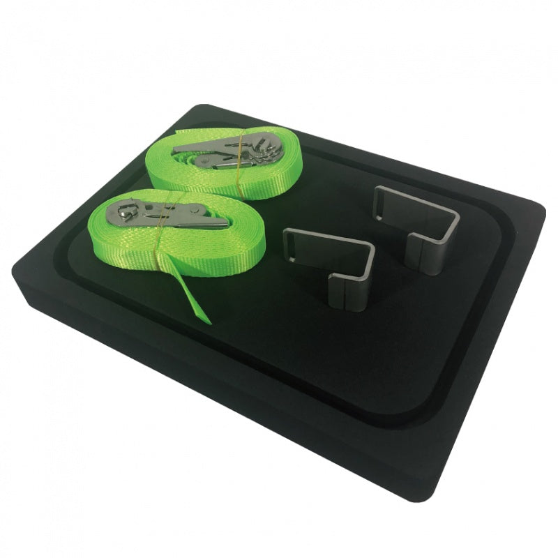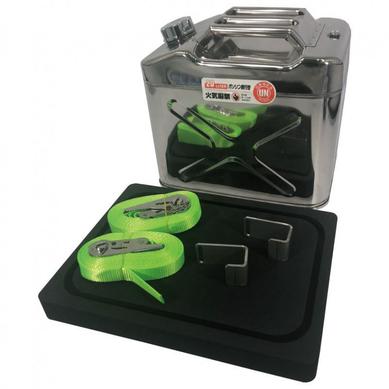 ●携行缶固定時の船体へのスクラッチを防止する高級EVAマット、ラッシングベルトが付属しています。