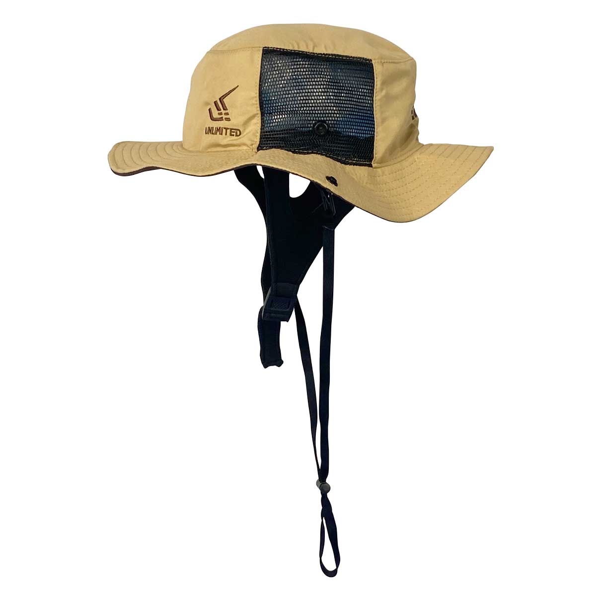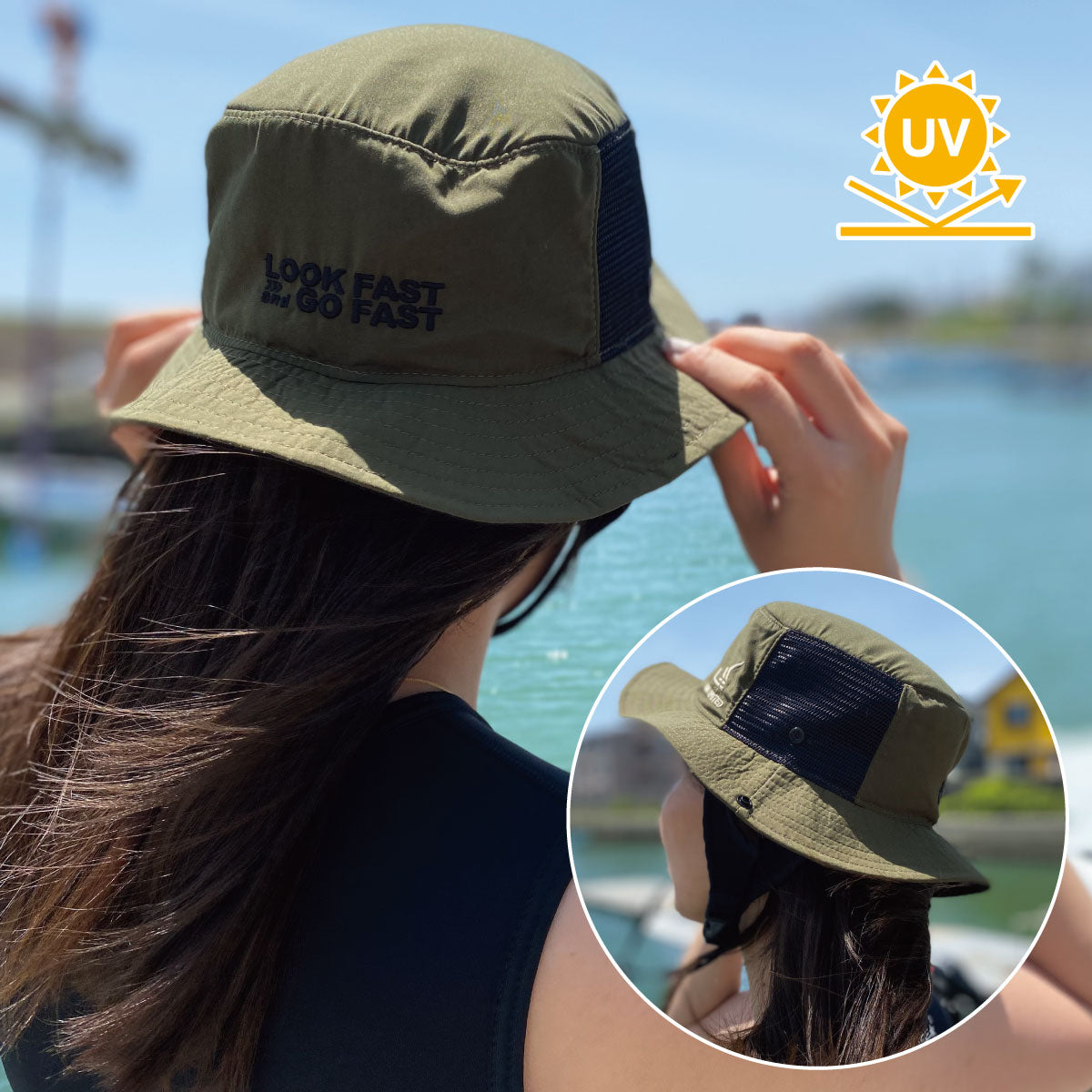 ■短いあごストラップと、長いハットストラップの両方を装備しているので軽くても風で飛ばされる心配がなく安心です。