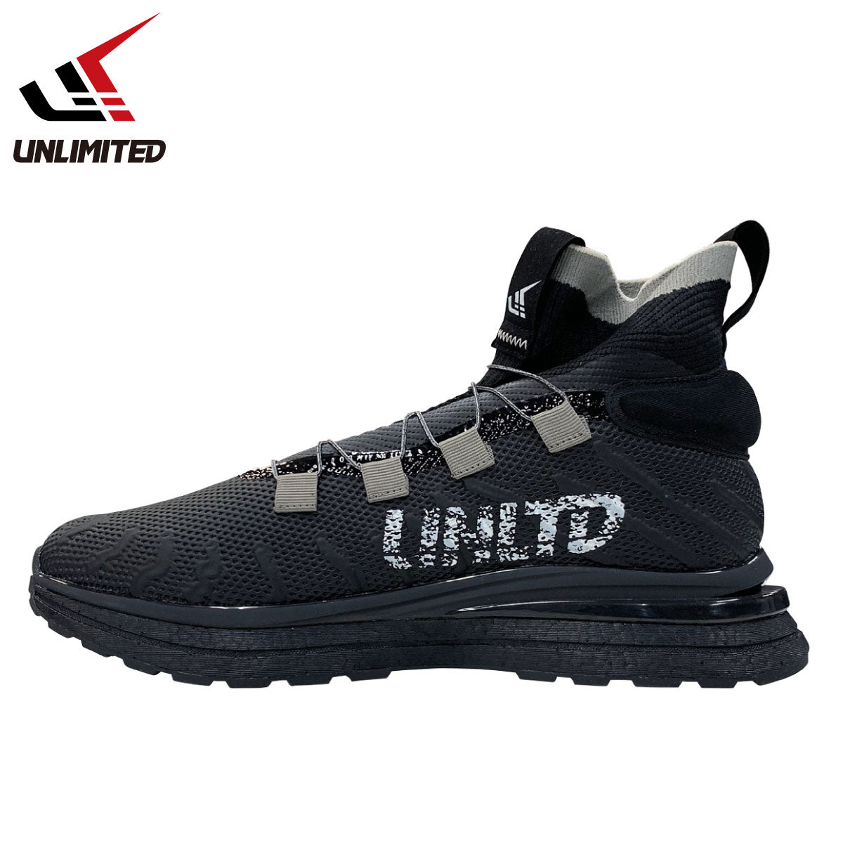 足首部分のニット素材: 足首部分には柔らかく伸縮性のあるニット素材が使用されており、ソックスのようなフィット感で足首にぴったりとフィット。快適さとサポートを提供します。