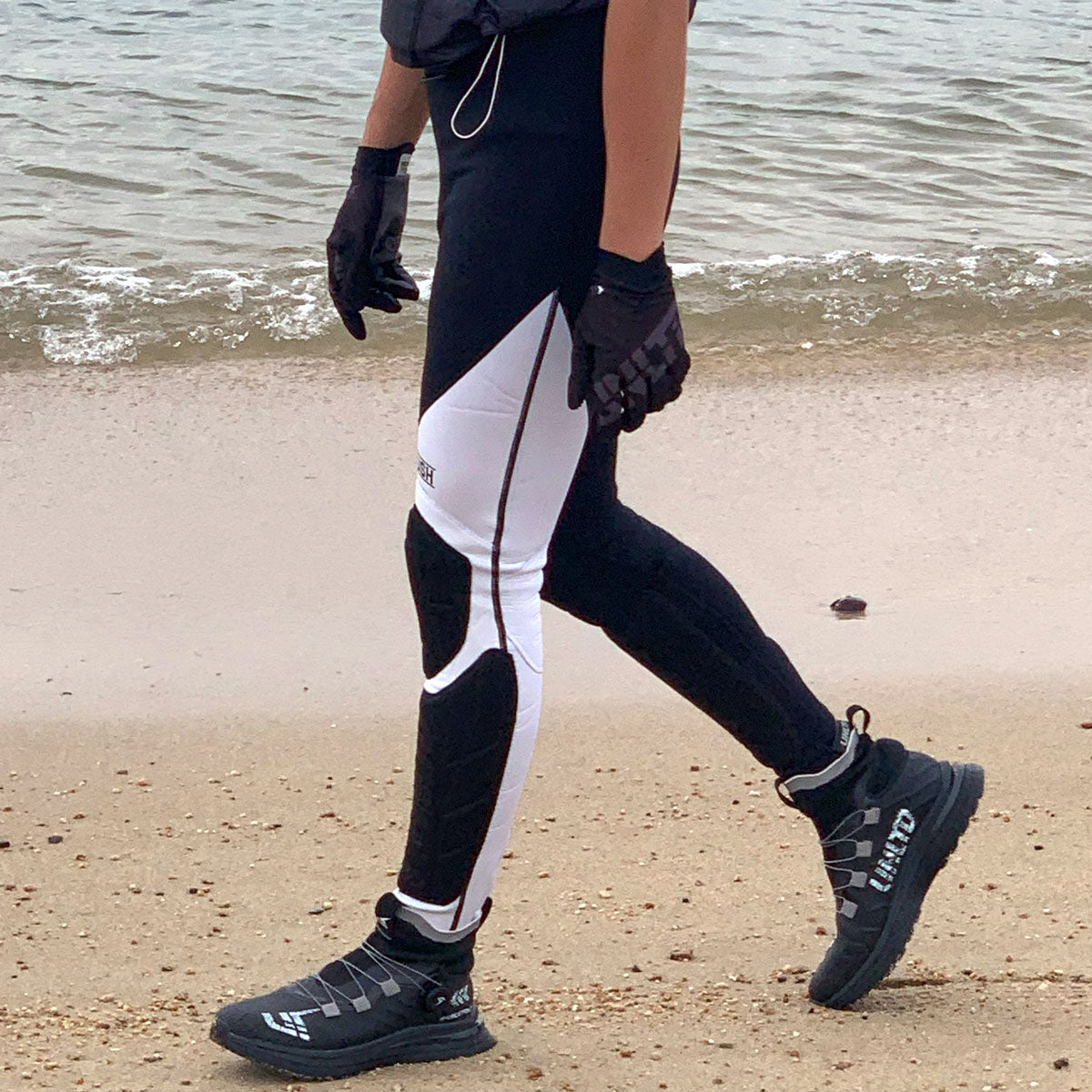 強化ゴム構造: 足首以外の部分には強化ゴムを使用し、耐久性と保護性能を高めています。アグレッシブなライディングでも柔軟性を損なうことなく、強固な保護を提供します。