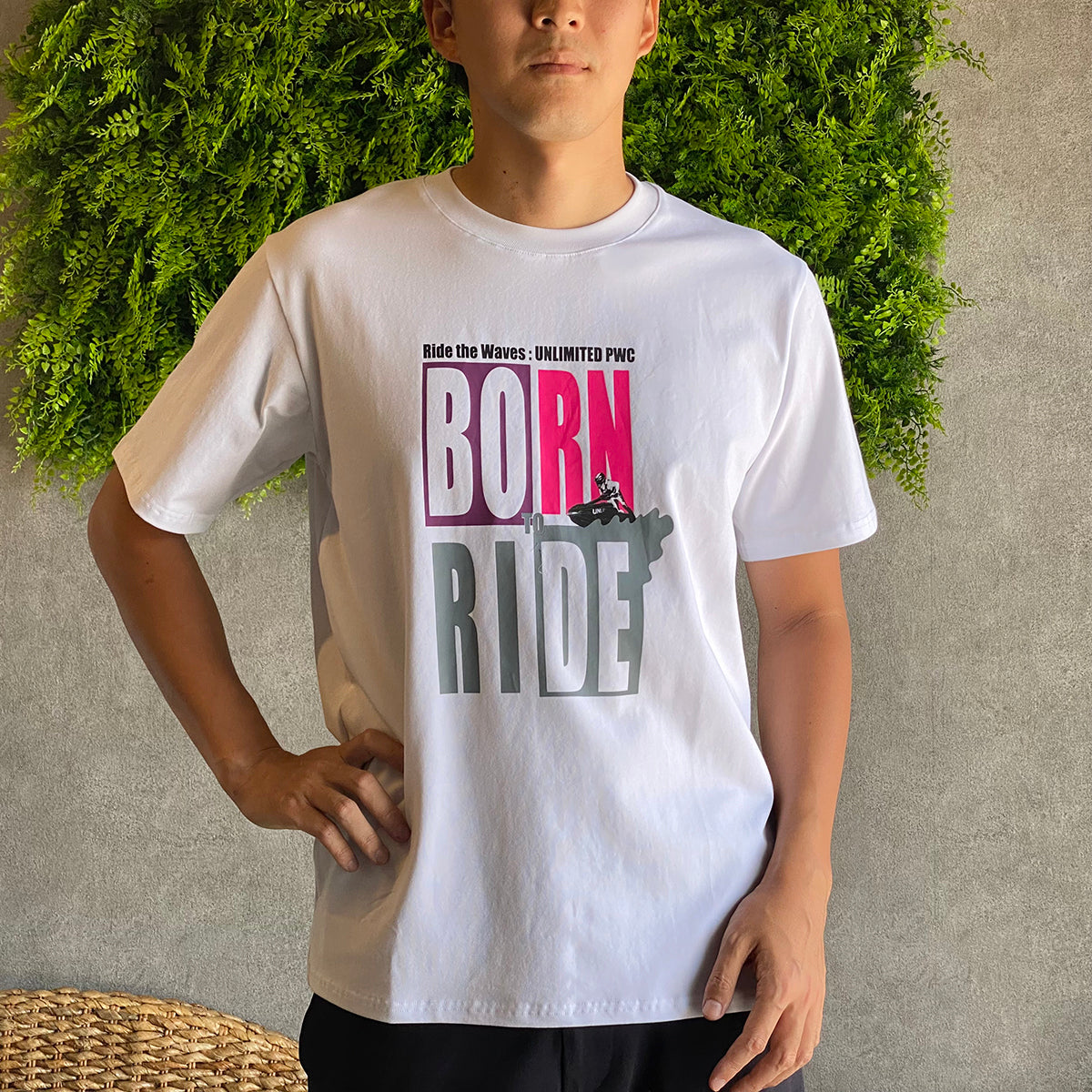 ピンクとパープルのロゴに、PWC(Personal Watercraft)のイラストをあしらったデザイン