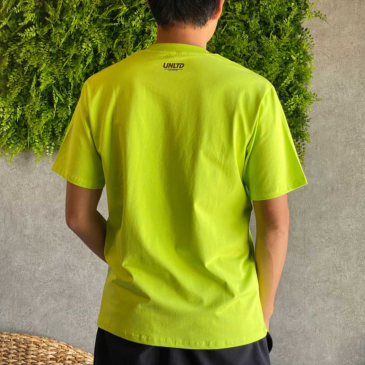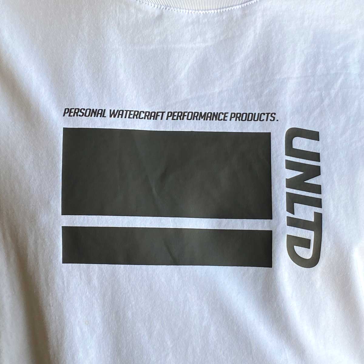 ブラックのボックスアイコンと、背中にグランジ加工のUNLTDロゴが特徴的なデザイン