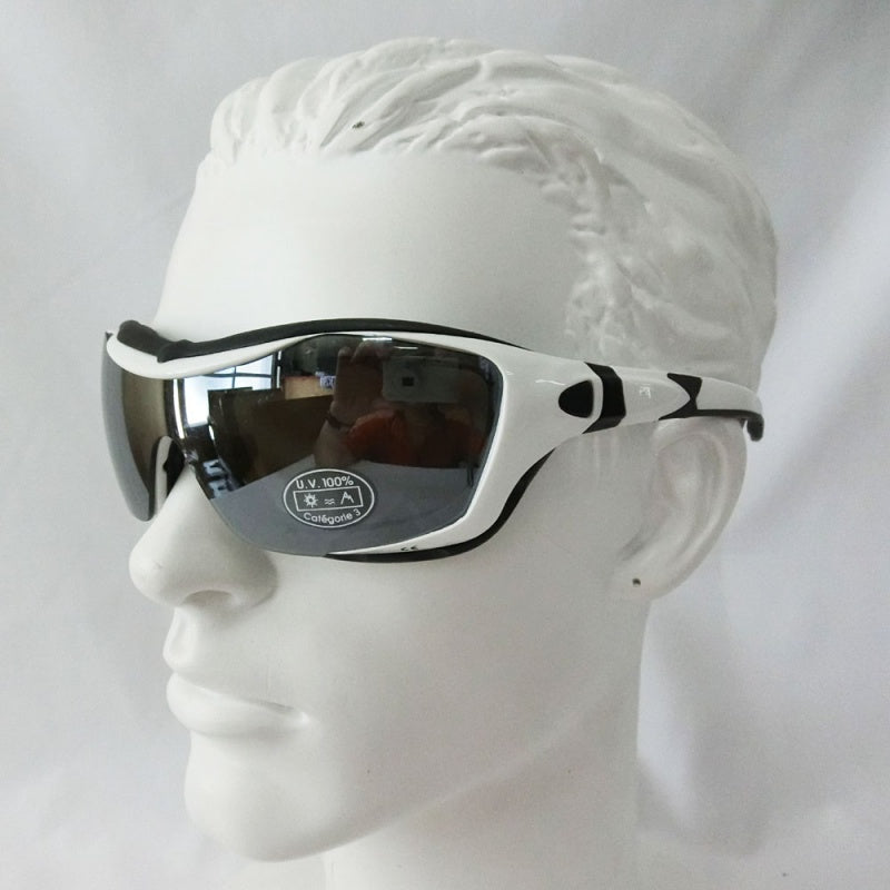 フレームカラーは海に映えるホワイトとクールなシルバー、レンズはグレーのUVプロテクションです。