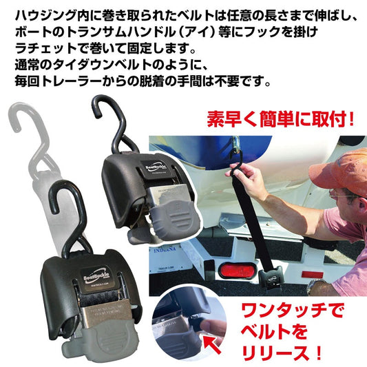 販売元:●ベルトの片付けが要らない、便利なラチェット式タイダウンベルトです。