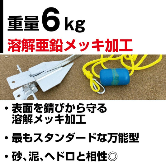 ダンホース型アンカー 溶解亜鉛メッキ加工【 6kg 】00589 ダンフォース型アンカー ボート ジェットスキー 水上バイク 錨 ANCHOR 【 同梱不可】