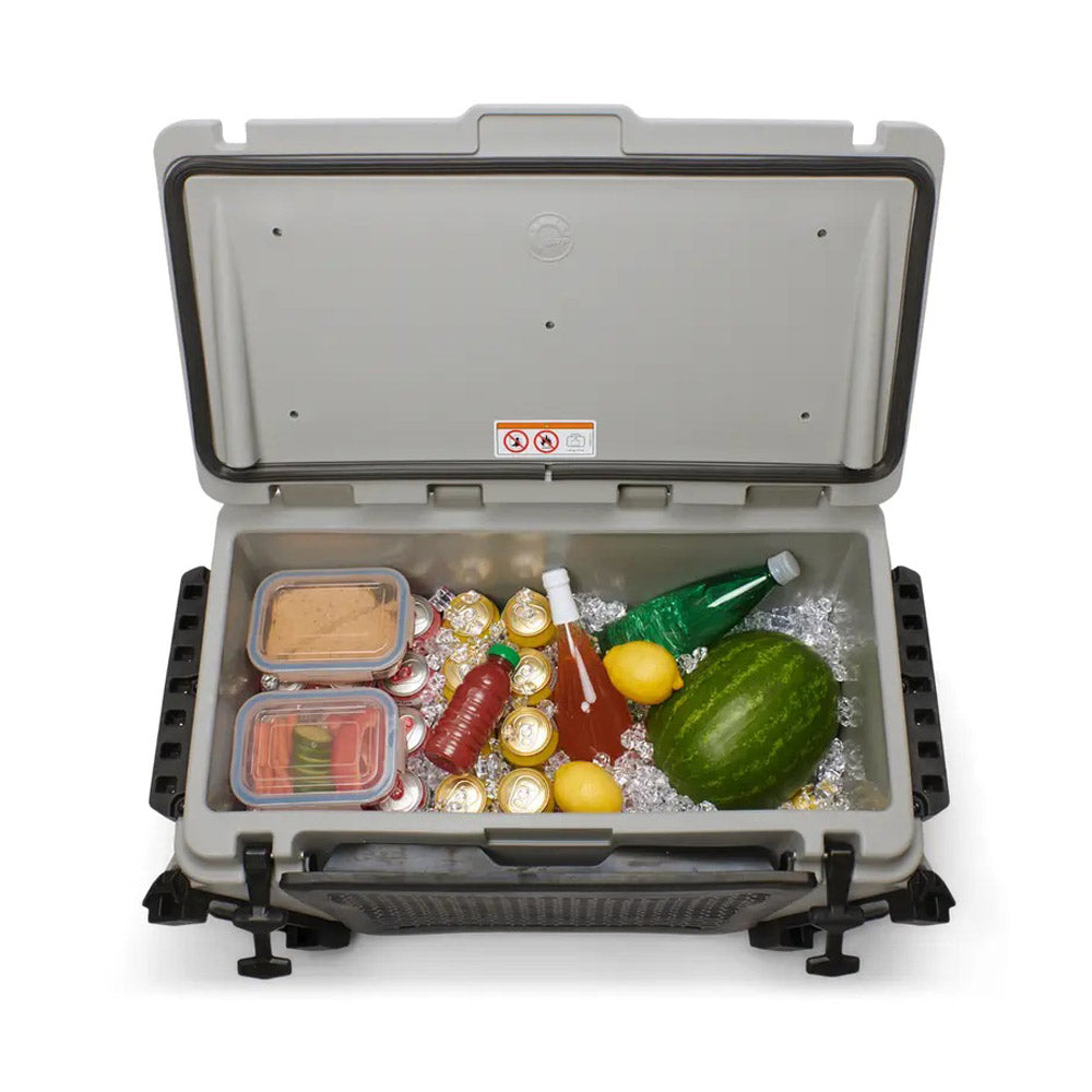 ●収納ポケット、作業台としても使えるフタ、好みの場所に装着可能なロッドホルダー(※別売)、トローリングスロットなど、多彩なフィッシング向け機能が充実した多目的アクセサリーです。