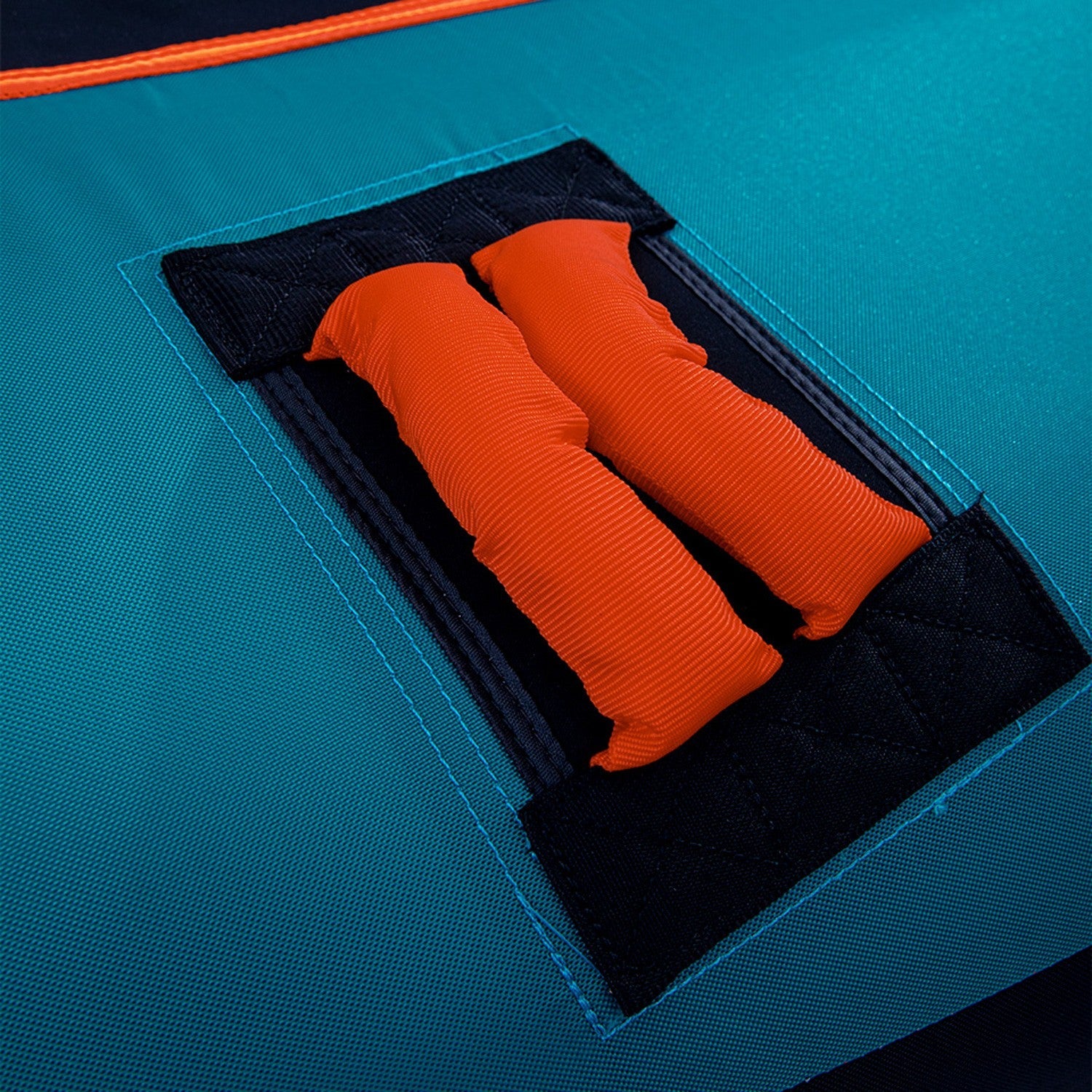 The flat handle, like a seat belt, makes it easy to get on and doesn't get in the way while riding.