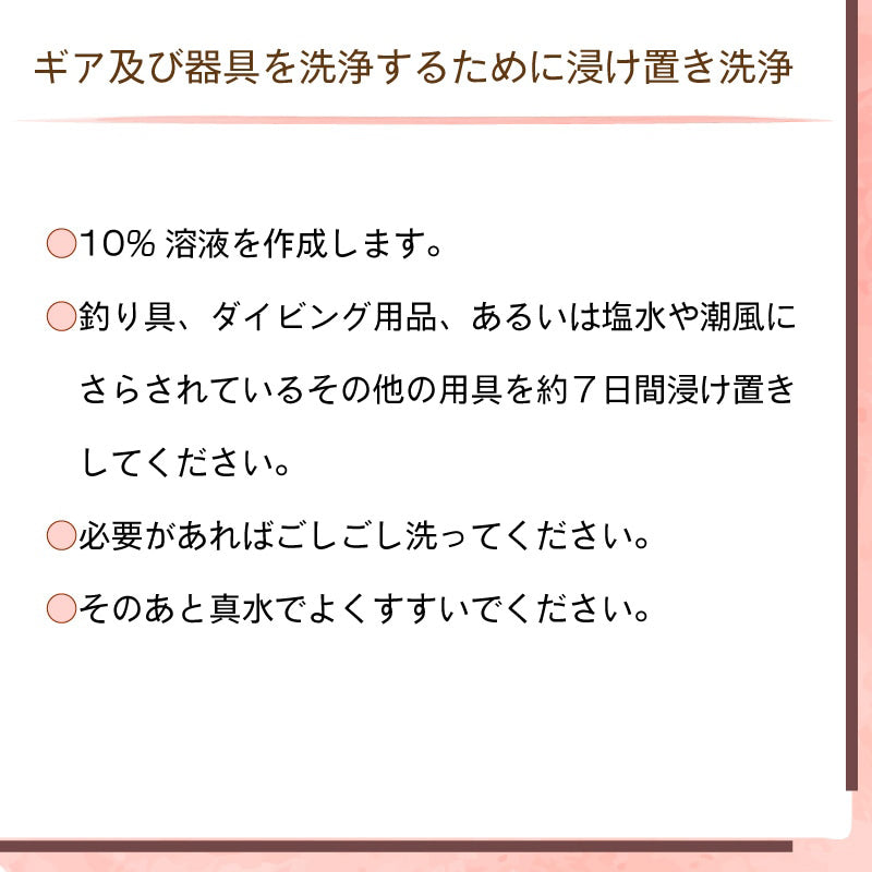 It can also be used on trailers, cars, marine items such as diving gear and fishing rods, and home windows that come into contact with salt water and sea spray.