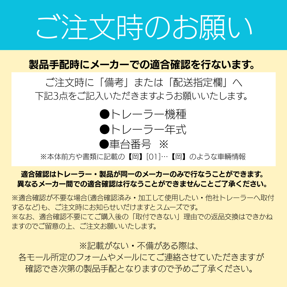 ●Trailer model name ●Trailer year ●Stamp number (number stamped on the front of the trailer)