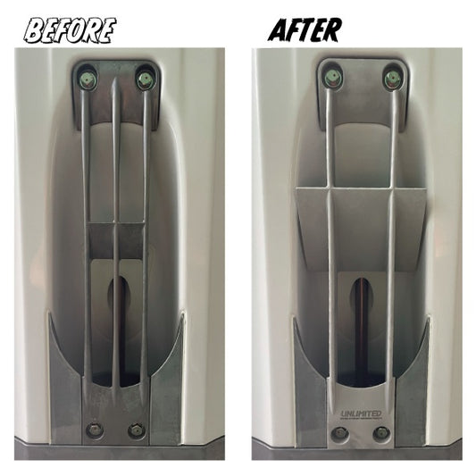 Significantly reduces cavitation.The water intake port at the back of the gate (UNLIMITED logo) is designed to be raised higher than usual (4mm higher) to allow more water to be sent to the pump.