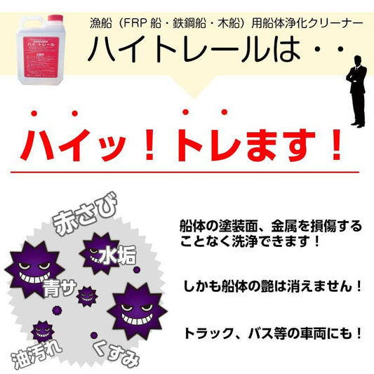 [How to use] For removing red rust, blue rust on the hull, removing stains from the wood of the deck, and cleaning light oily substances.It does not cause corrosion damage to painted surfaces or metal surfaces of the hull, and the luster of the hull does not disappear.