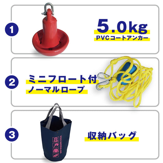 8/9 Set Draft Mushroom Anchor 5kg Rope with Float and Bag Set PVC Coated Mooring Sea River 10450-RB