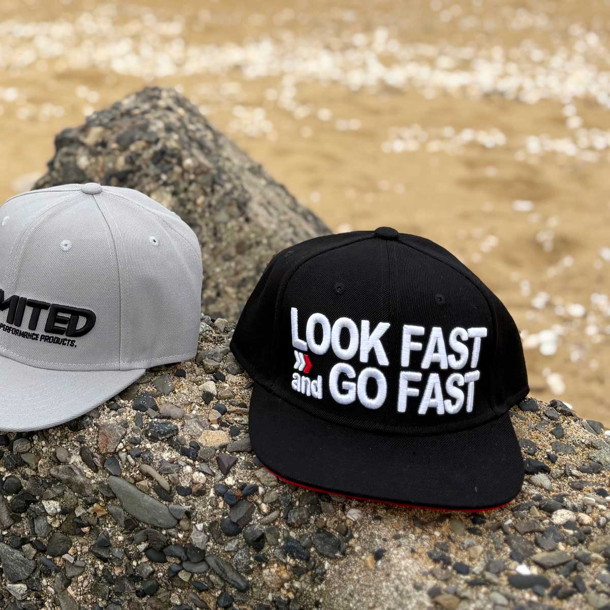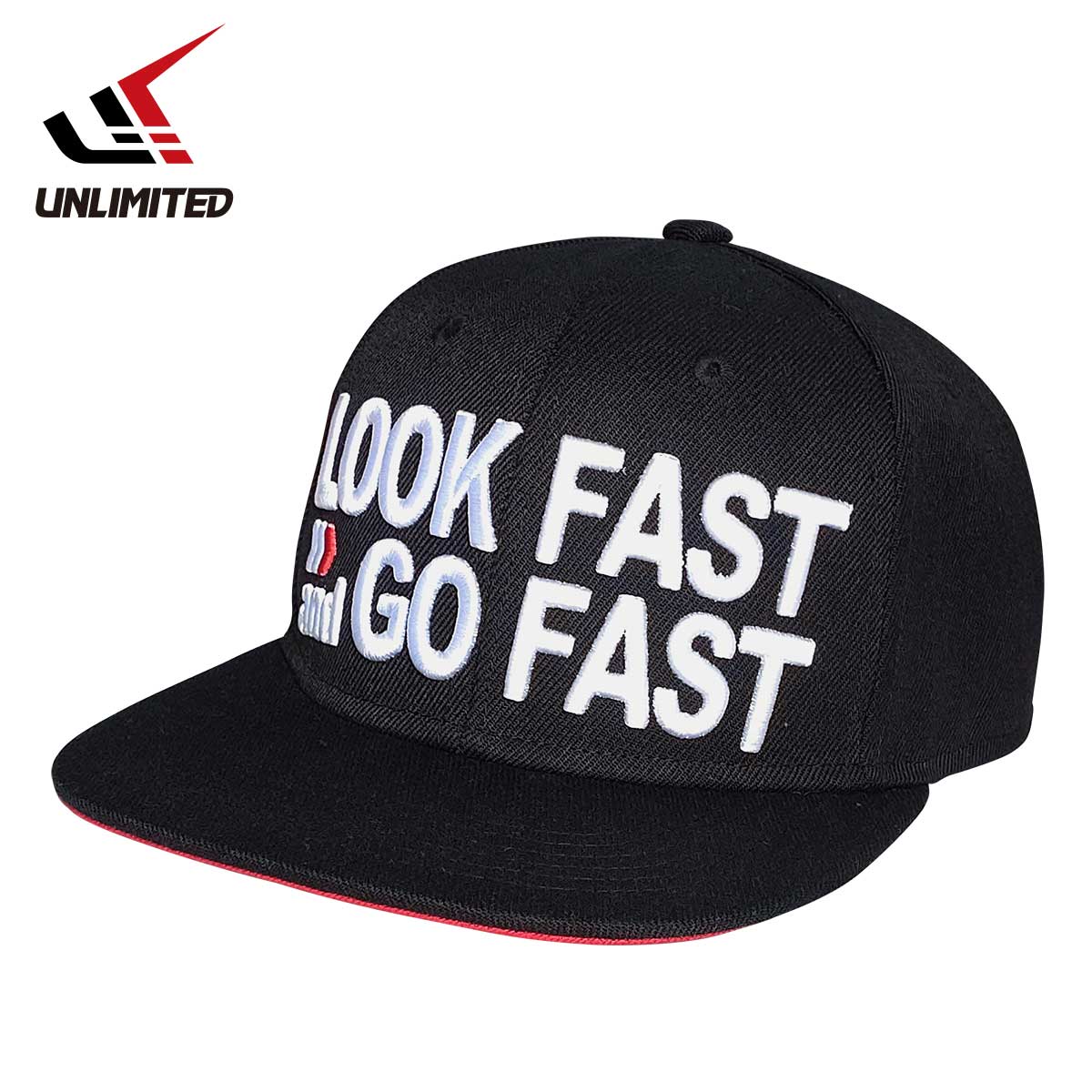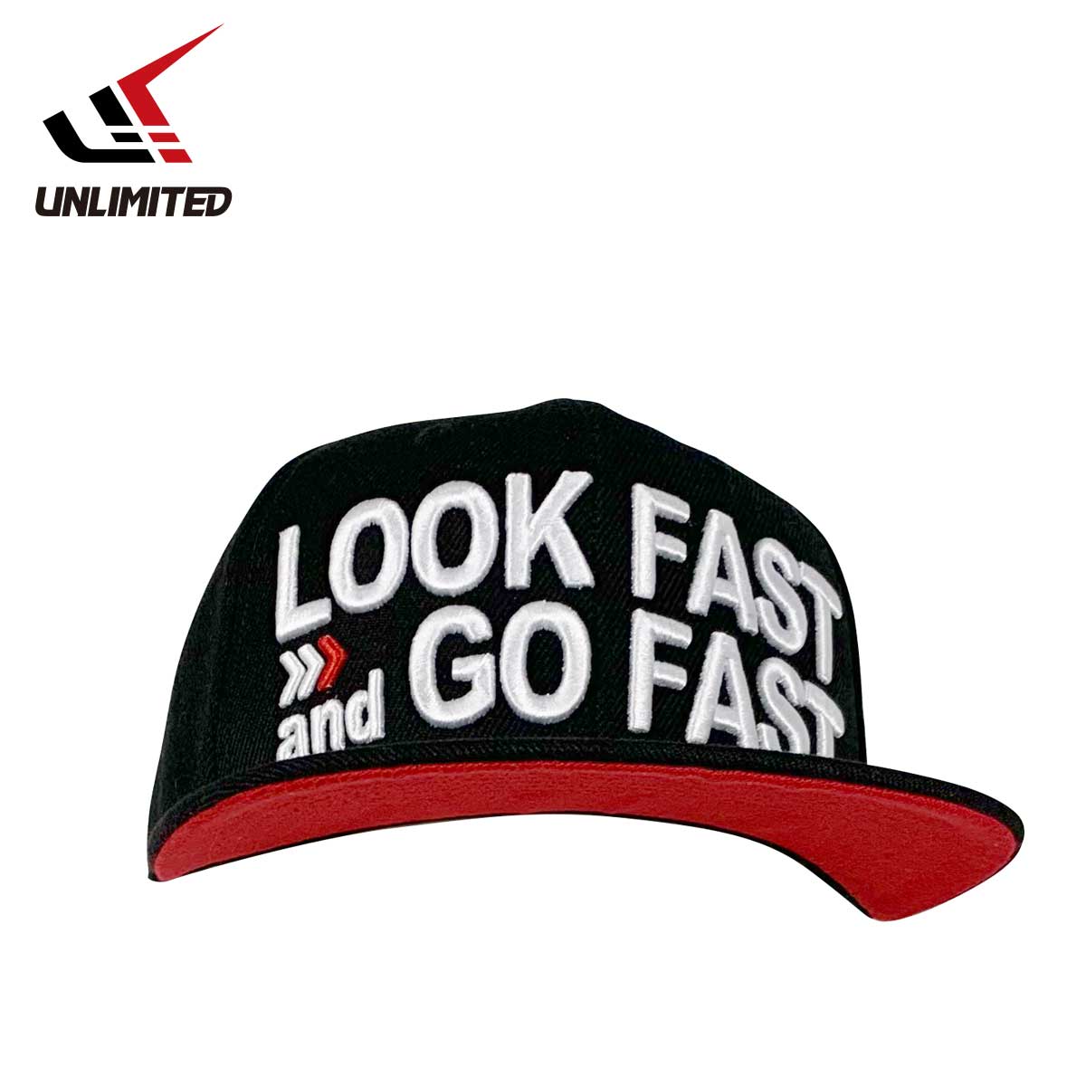 A cap with a large "LOOK FAST and GO FAST" logo.