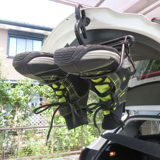 Comes with a rotating grip that can be used as both a clothesline and a rope, and can also be used as a hook. Since the shoes are turned upside down, the water from washing them will easily fall down and there will be better ventilation.It will definitely make it easier to wash shoes and waders that are not only difficult to dry, but also difficult to figure out the correct way to dry! Only with a special product can you dry your shoes in an ideal way by hanging them in the air and turning them inside out.