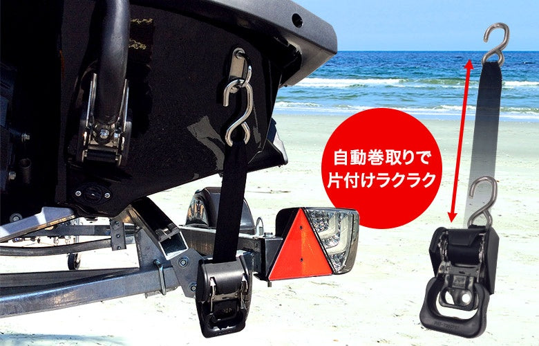 ●Metal parts such as hooks and ratchets are made of rust-resistant stainless steel.