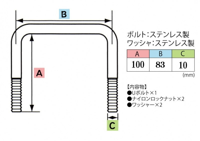 Stainless steel U bolt kit 100 x 83 x φ10 trailer parts boat trailer 09015-01
