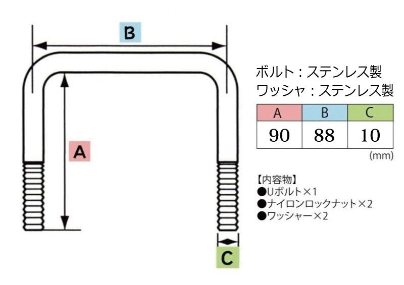 Stainless steel square U bolt U-shaped bolt 90x88xФ10 U-SUS1017